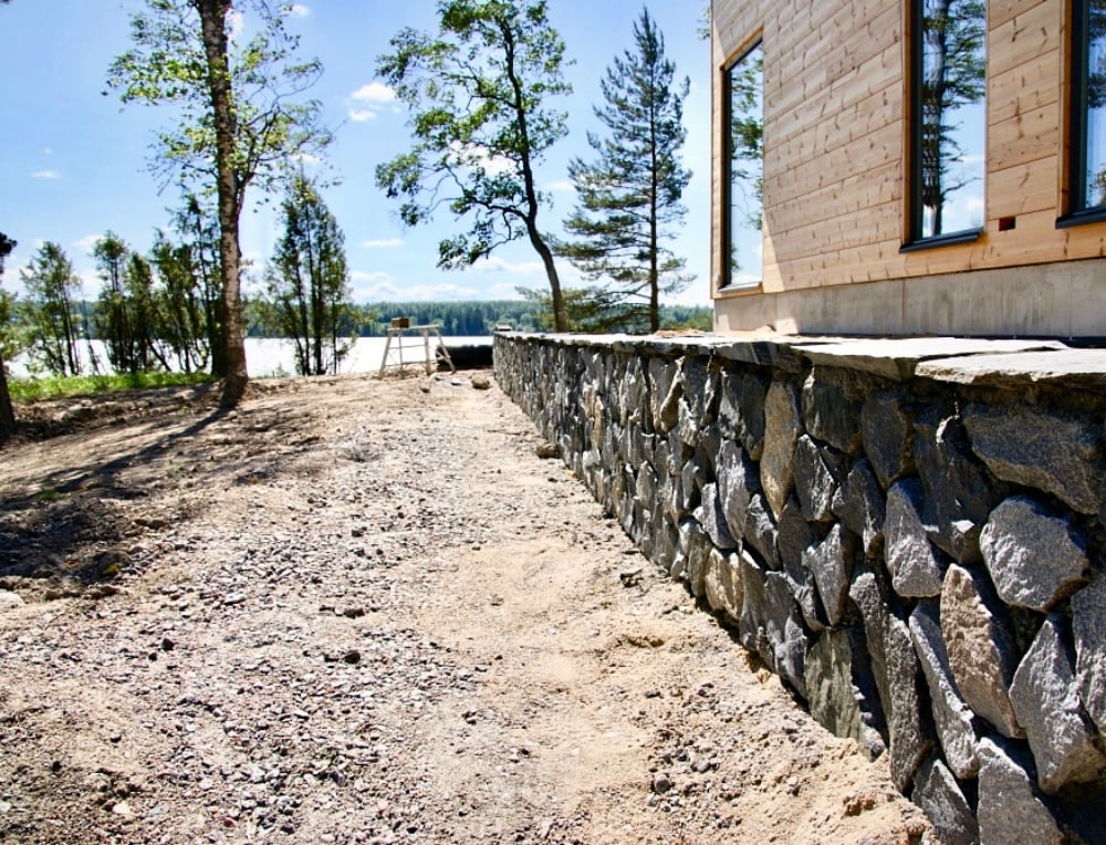 Tuotevalikoimaamme kuuluvat luonnonkivimuurit, kiviaidat, kiviportaat, kivielementtilattiat, kivielementtiseinät, saunan kiviseinät, kivipilarit. Toteutamme tarvittaessa myös maanrakennustyöt. Tukimuurirakenteet ja maanpaineseinät on helppoa toteuttaa anturalla varustetuilla kivielementeillä ja suuria valutöitä ei tarvita työmaalla.